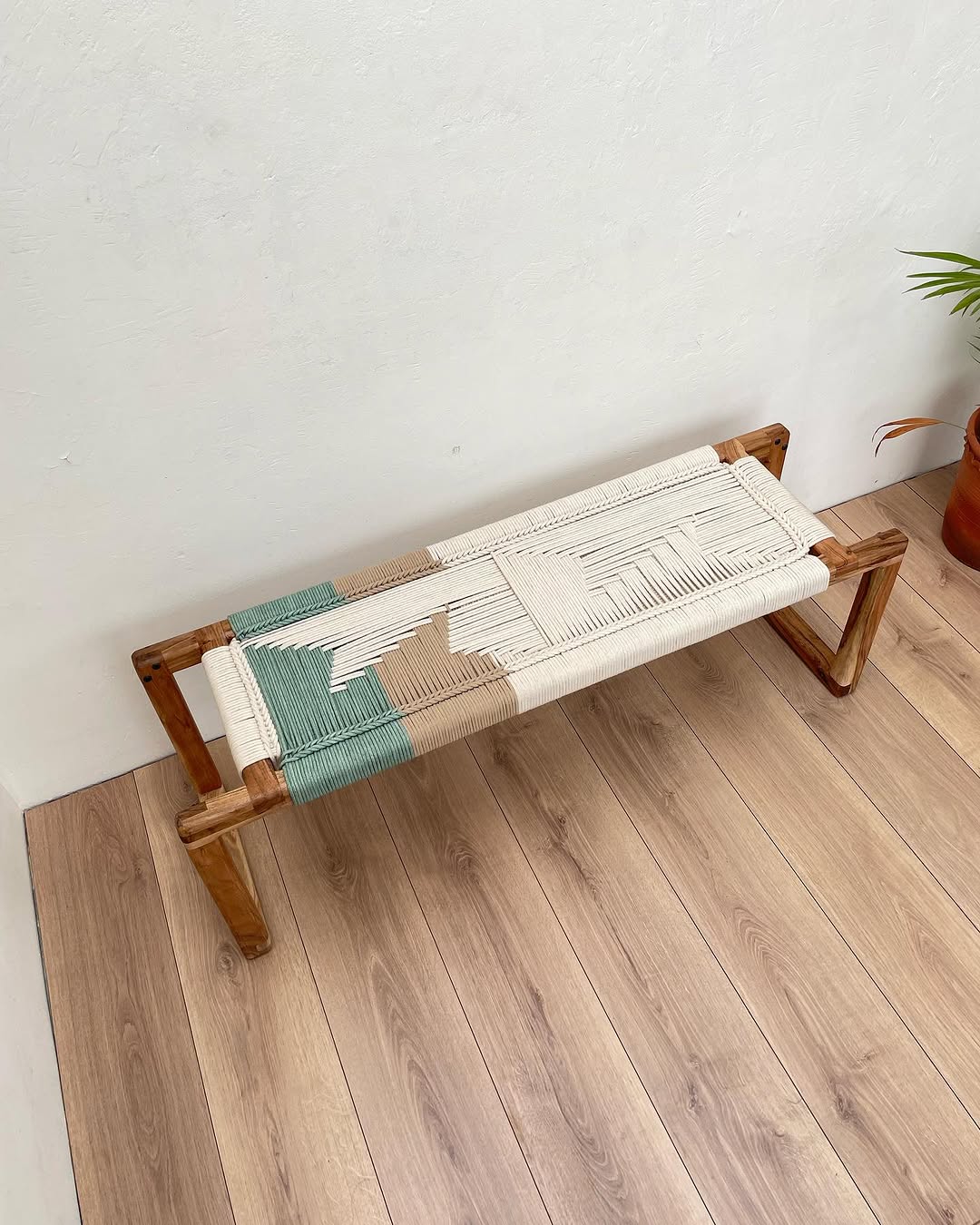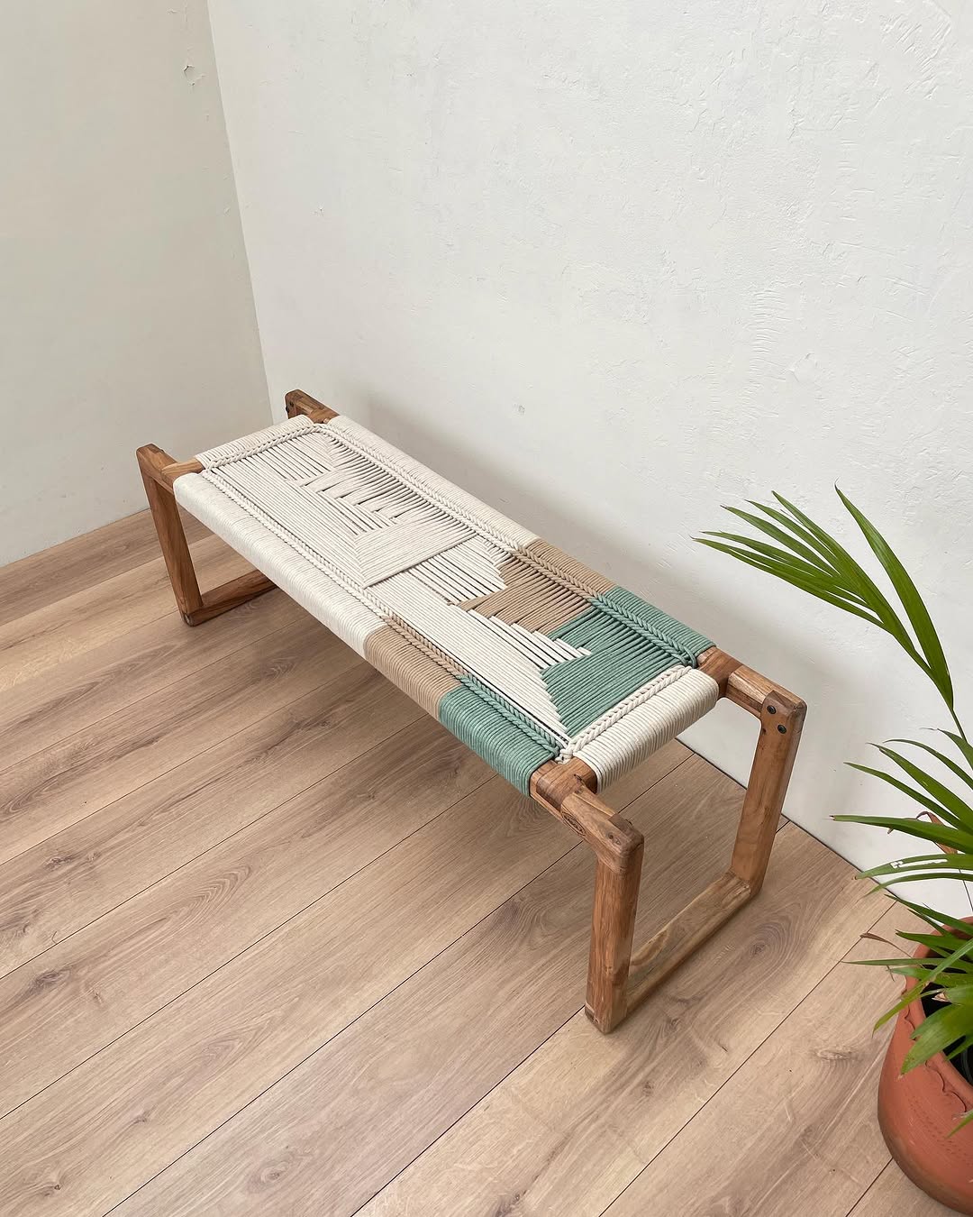 Handwoven rope bench. Terra model