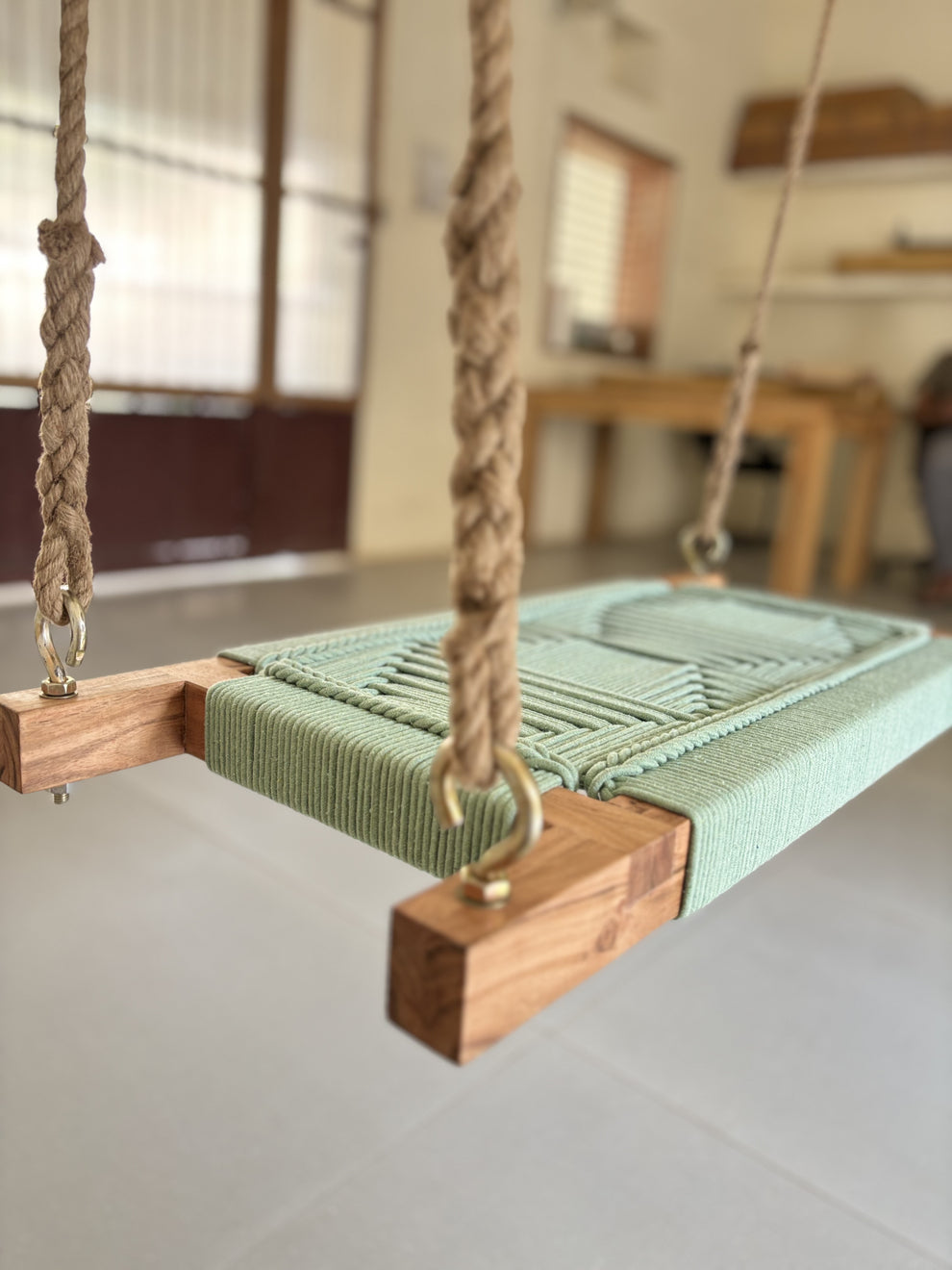 Woven Swing with Backrest – Ocean Green & Beige #DOUBLE